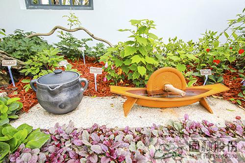 而花境中點綴的藥臼、藥碾、藥葫蘆、藥箋等中藥小品,不但營造出濃濃的中藥氛圍,而且能夠吸引游客看一看、摸一摸,身臨其境感受中藥文化的博大精深。這樣的實景體驗,讓游客不再是“隔空看花”,而是與園林景觀實現(xiàn)了有趣的互動。