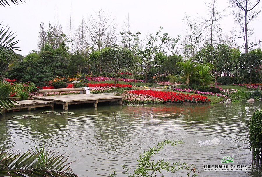 第六屆中國花博會之浙江園,又名花漫錢塘。占地面積1420平方米,呈自然式布局,全園以浙江山水為背景,以母親河錢塘江奔流入海為主線,一灣流水貫穿全園,"錢江源"、"晴空海蜃"兩大景觀交相輝映。園內(nèi)綠樹盎然,花漫遍地,洋溢著浙江的朝氣與活力,體現(xiàn)了浙江自然山水、人文歷史、經(jīng)濟(jì)社會的和諧。