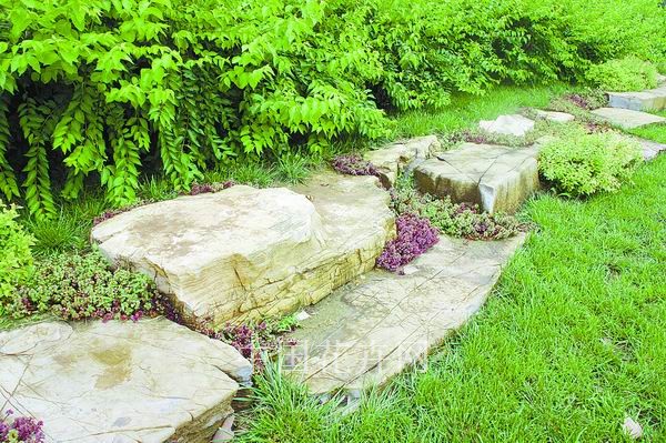 一路走下來,豐富多彩的植物配置讓人在炎炎夏日里的感受到絲絲清涼,而更讓人眼前一亮的,則是“腳下的風(fēng)景”———園路。