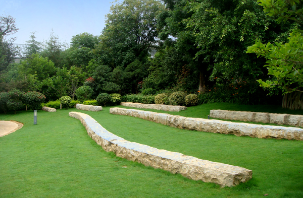 自然面花崗巖條石布置在草坪上,營(yíng)造極具現(xiàn)代氣息的景致。