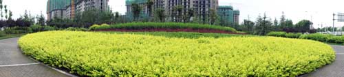 據(jù)高經(jīng)理介紹,該工程是壽光市2009年的一項重點市政工程,本著綠色、生態(tài)、自然的原則,在保留部分大樹的基礎(chǔ)上,對道路景觀進(jìn)行了全新改造。工程由北至南,依次設(shè)置下沉廣場、北廣場、南廣場、方形廣場等多個景觀節(jié)點,每個節(jié)點的植物配置、地面鋪裝等都各不相同,形成一個個獨具特色的小場景;同時,又通過錯落有致的植物搭配、蜿蜒曲折的游憩步道,將整個工程貫穿起來,使得整體的景觀效果統(tǒng)一中富于變化,開闊中層次分明。