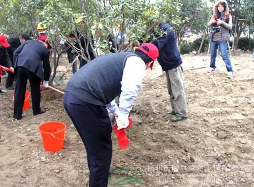 在活動(dòng)現(xiàn)場(chǎng),主持人介紹了植樹活動(dòng)宗旨、植樹工作的安排后,到場(chǎng)的拱墅區(qū)政府領(lǐng)導(dǎo)、中國鐵建國際城副總經(jīng)理倪志宇相繼發(fā)表了各自的低碳宣言。接著,各位領(lǐng)導(dǎo)拿起工具親自培土、澆水,種下了一棵棵茁壯的桂花樹,期待花香滿溢,許愿綠樹長青。杭州市園林綠化工程有限公司項(xiàng)目部積極做好此次活動(dòng)的配合工作,助中國鐵建植樹節(jié)活動(dòng)成功舉辦。