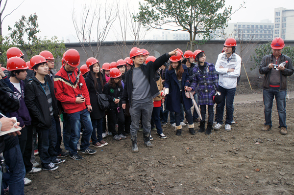 景觀工程師趙海耀在給同學(xué)們做現(xiàn)場講解