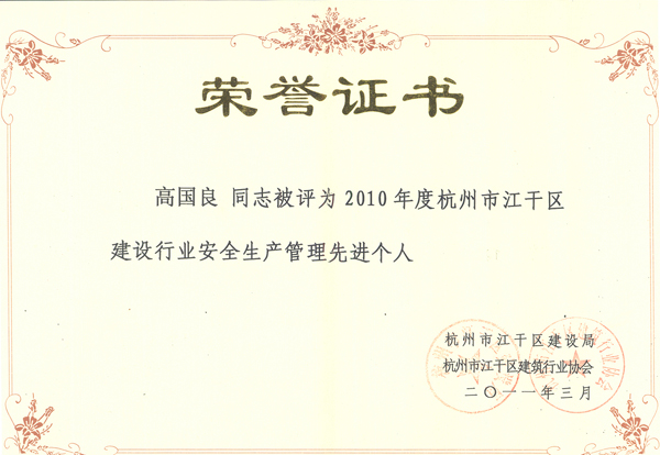 會議旨在總結(jié)經(jīng)驗,表彰先進,現(xiàn)場宣讀了一批在2010年為江干區(qū)經(jīng)濟發(fā)展做出突出貢獻的建筑企業(yè)和個人名單,并頒發(fā)了獎牌和證書。其中,公司被評為“2010年度杭州市江干區(qū)城市園林綠化優(yōu)秀企業(yè)”,成為上榜的七家企業(yè)之一;公司工程總監(jiān)、市政分公司副總經(jīng)理高國良被評為“2010年度杭州市江干區(qū)建筑行業(yè)安全生產(chǎn)管理先進個人”。