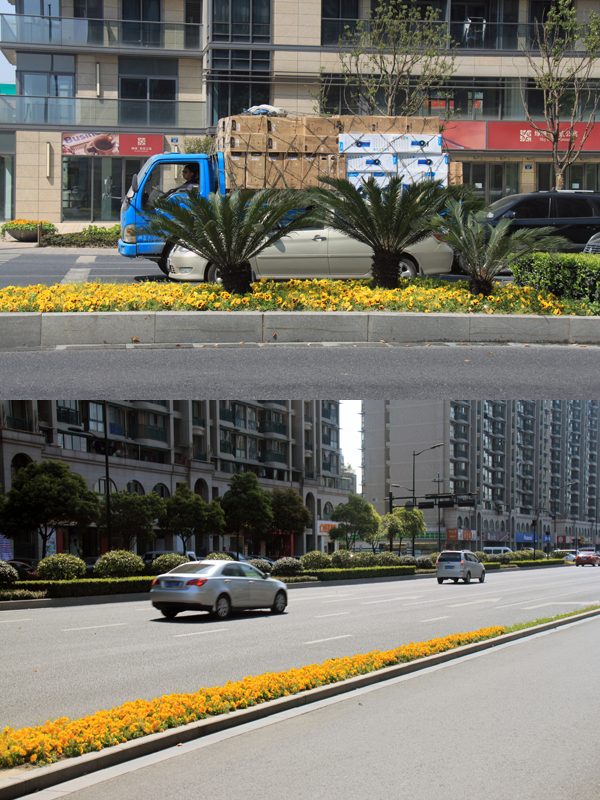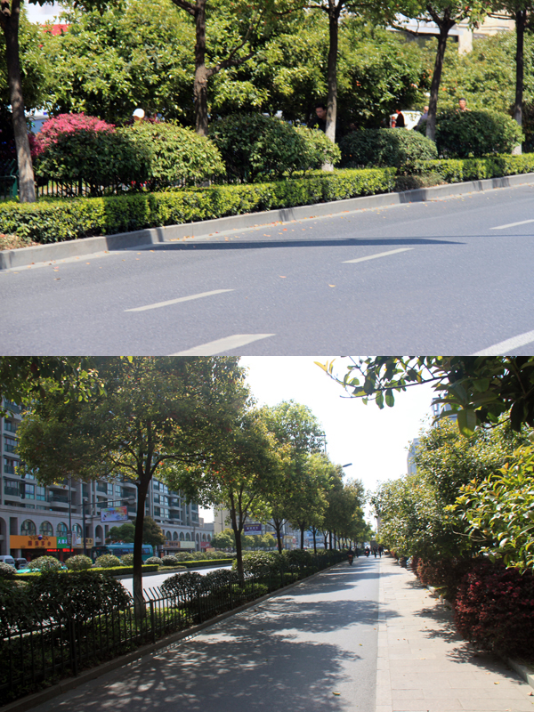 鳳起東路上秋濤路至新塘路的這段綠化,正是由公司施工的。春日明媚的陽光下,這段道路中間的隔離帶里,修剪得整齊一致的灌木,一眼望去,綠色滿目,特別是鵝黃色的嫩葉,有著不同于老葉的青翠,昭示著生機無限,使司機在行車的途中視野清晰、開闊通透;道路兩側的隔離帶里,枝葉細密的香樟擋住了直射下來的陽光,灑下滿地綠蔭,為行人撐起了一道清涼的“綠傘”;十字路口的小花壇里,黃色、紫色的三色瑾燦爛地盛開,為等待紅燈的行人和司機帶來春天的氣息。整條道路的綠化看起來清新養(yǎng)眼,不管是開車行駛的司機還是慢步而行的路人,都能感受到閑適和愜意。