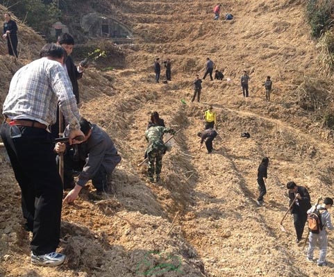此次種植的是油茶小苗,為了提高樹(shù)苗的成活率,專門請(qǐng)來(lái)當(dāng)?shù)剞r(nóng)民,詳細(xì)講解種植的步驟、間距等種植要點(diǎn)及注意事項(xiàng)。隨后,大家兩人一組,興致高昂地開(kāi)始了種樹(shù),挖穴、種苗、填土……經(jīng)過(guò)一個(gè)小時(shí)的緊張勞動(dòng),500多株油茶樹(shù)就種好了。