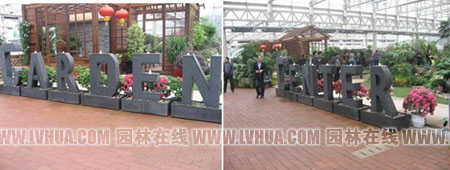 一進入室內,首先映入眼簾的就是“GARDEN CENTER”(花園中心)幾個大字,仔細一看,上面還有流水青煙,十分吸引人的眼球?;▓@中心內不僅展示了各式各樣的室內植物、庭院植物,更有各種肥料、工具等園林資材展示。
