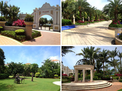 走進(jìn)森海灣,紅瓦白墻、單邊回廊的建筑設(shè)計,與郁郁蔥蔥的植物一起,構(gòu)建了一個海灣童話城堡世界,營造出閑適、愜意、溫馨、雅致的居住氛圍。據(jù)項目負(fù)責(zé)人葉偉華介紹,作為一個高端住宅區(qū),森海灣對園林景觀的要求比較高,小區(qū)以中軸景觀帶為主景,設(shè)有游泳池、休閑草坪、疊水等,種植大王椰、霸王棕、鳳凰木、重陽木、中東海棗、老人葵等大樹襯托整個中央主景。各處庭院則選擇豐富多彩的樹種,采用不同的手法布局與建筑完美融合,透露出精細(xì)的西班牙情調(diào),用簡單詮釋浪漫,點綴悠閑的度假生活,使整個園林充盈著濃郁的熱帶風(fēng)情。