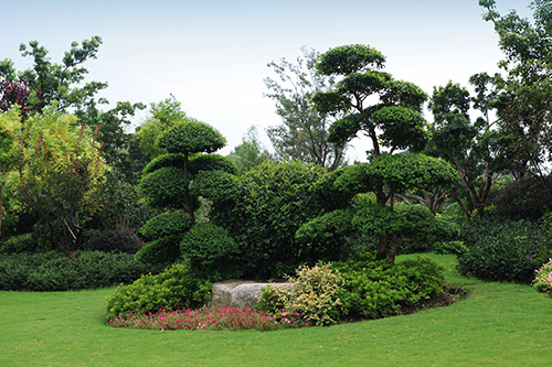 在項(xiàng)目主入口、次入口、中心景觀及一些重要景觀節(jié)點(diǎn),黑松、女貞、水蠟、五針?biāo)伞⒓t花檵木、紫薇等造型樹木,宛如萬綠叢中的一點(diǎn)“紅”,彰顯出獨(dú)特的氣韻與品味,起到畫龍點(diǎn)晴的效果。