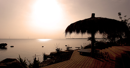 觀景平臺(tái)視野開闊,濱湖風(fēng)光水天一色。臨湖的觀景平臺(tái),原色的木質(zhì)鋪裝,素樸的茅草亭,寬大的躺椅,營(yíng)造出一個(gè)自在的小天地。這處觀景平臺(tái),背后是珍珠泉泡池,泡完溫泉,可以直接來到觀景平臺(tái),遠(yuǎn)眺太湖的煙波浩渺,水天一色。
