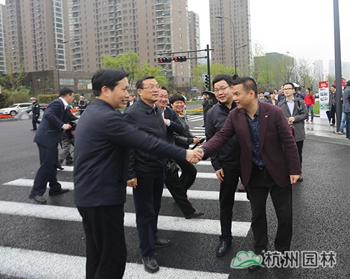 4月7日上午,浙江省委常委、杭州市委書記趙一德,杭州市委副書記、市長張鴻銘等市四套班子帶領(lǐng)各區(qū)縣及相關(guān)部門負(fù)責(zé)人,冒雨檢查新塘路綜合整治工程情況。杭州市園林綠化股份有限公司總裁張炎良陪同前往。