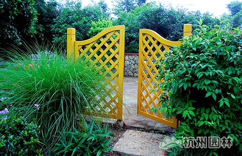 門口安裝高1.2m、寬1.5m的對開推入式木門,以此吸引游人眼球;花園入口采用常綠灌木、花灌木、宿根花卉相結合的手法,將花園內的景觀進行了遮擋,同時營造出引人入勝的入口景觀。