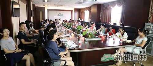 8月17日,杭州市園林綠化股份有限公司2016年半年度通訊員工作會議在8樓會議室召開,來自各部門的14名通訊員參加了會議。會議由企劃部經(jīng)理、《園冶》報責任編輯鐘晴主持。