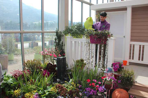 在園藝中心選購打造一米花園所需的園林小品、植物材料及其他輔材。