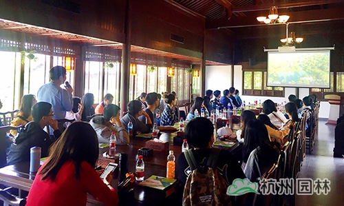 在座談交流會上,人力資源部副經(jīng)理沈曉萍向大家介紹了杭州園林的發(fā)展情況,展示了企業(yè)近年來承建的精品工程,并針對園林專業(yè)學(xué)生在企業(yè)的實習(xí)方向與職業(yè)發(fā)展規(guī)劃作了簡單介紹。邱希陽老師結(jié)合自身工作經(jīng)驗,針對杭州園林承建的工程特點,為在座學(xué)生做了精彩講解。