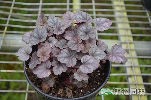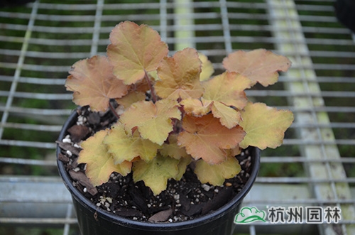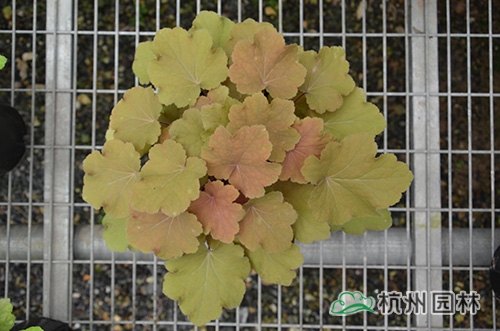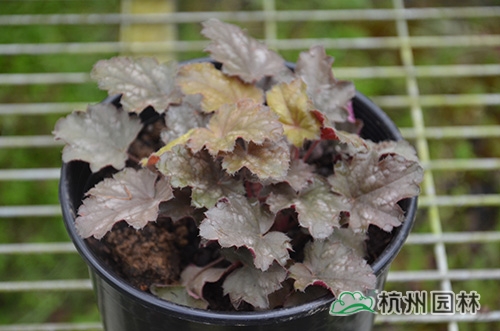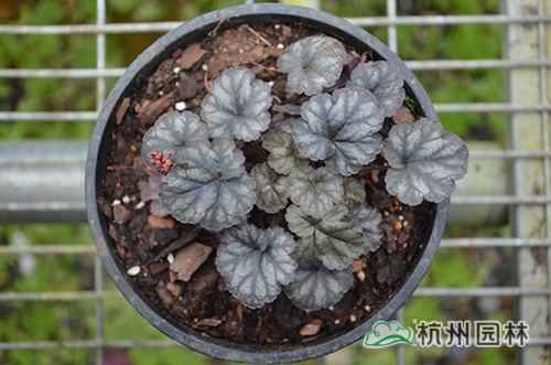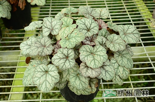 礬根又名小花腎形草,英文名為“Alum root”(因根部不規(guī)則膨脹而來),因此在引入中國的時候被翻譯成了“礬根”。礬根葉色繁多,且葉色會隨著季節(jié)、環(huán)境、溫度和光照條件的變化而改變。例如,‘蜜桃黃’在春天的時候,葉子展現(xiàn)出細膩的銀色光澤,成熟的葉片顏色會呈現(xiàn)紫色并略帶玫瑰紅;‘赤砂巖紅’的葉色會從桃紅色變?yōu)榱零~黃色,再變?yōu)榫G色帶有琥珀色;‘貴族紫’葉子的顏色會保持穩(wěn)定的紫色,冬天的葉子會變成銀色。