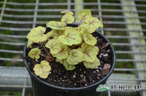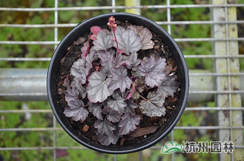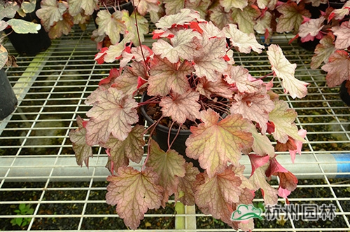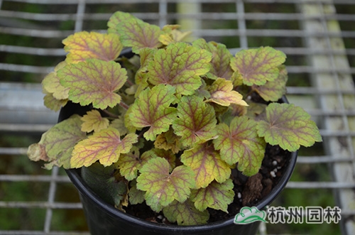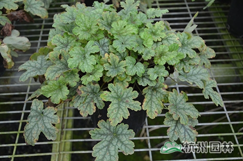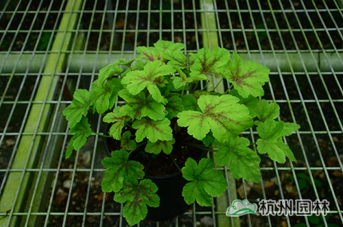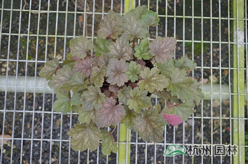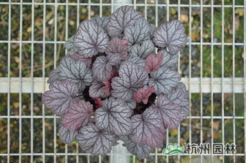 礬根Heuchera micrantha,虎耳草科礬根屬,多年生耐寒草本花卉,原產(chǎn)于美國中部,是少有的彩葉陰生地被植物,被廣泛應用于美國園林景觀中。近年來,在國內,作為新優(yōu)地被植物,礬根因其美麗的葉色和獨特的葉形,良好的觀賞性和景觀效果,成為熱門園林植物之一,有著廣闊的應用前景。