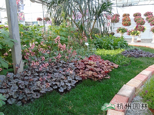 礬根花色各異,植株姿態(tài)優(yōu)雅,色鮮艷、花期長,既可以與其他觀賞植物搭配種植,也可以將不同顏色的礬根品種搭配種植,具有很高的觀賞價值。礬根在園林中多應用于林下花境、地被、庭院綠化、立體造景;也多配置于多年生花壇或者花帶邊緣、巖石園、公路道路兩側等;也可作高架橋立體裝飾;組合盆栽用于陽臺、花園及私家庭院中,也凸顯出其色彩優(yōu)勢。