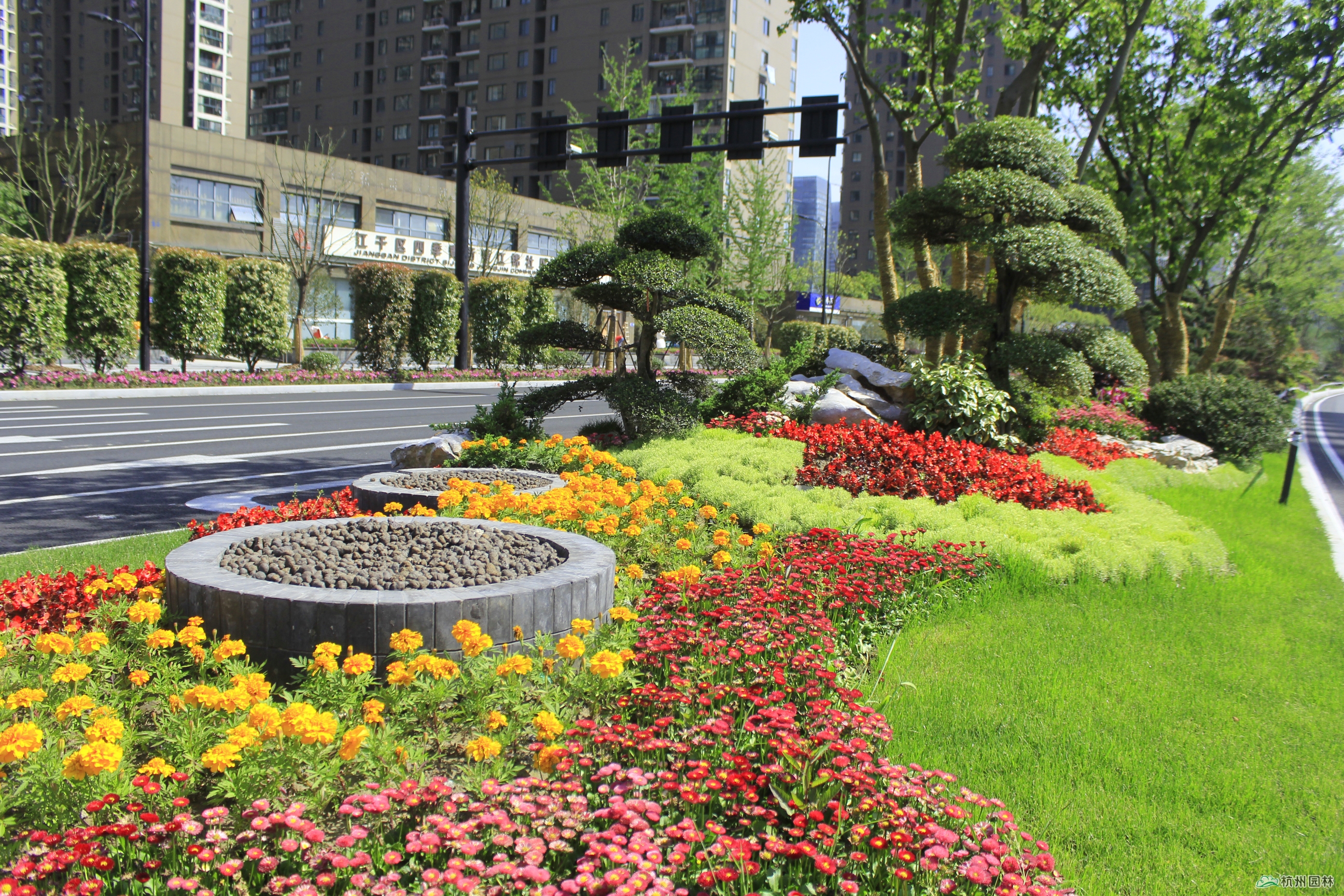 新塘路位于杭州城市東部,是連通杭州火車東站與錢江新城的主要交通要道,也是杭州G20峰會(huì)的主要迎賓大道。由杭州市園林綠化股份有限公司承建的新塘路(新風(fēng)路-新業(yè)路)綜合整治工程景觀綠化I標(biāo)段,南起新業(yè)路,北至?xí)一ㄢ致?,施工?nèi)容包括綠化種植、景墻、土方工程、硬質(zhì)鋪裝等。