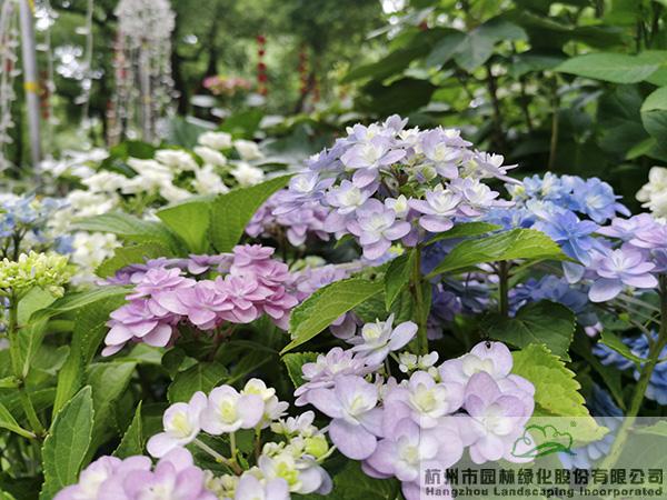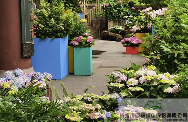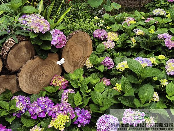 在城隍閣二樓平臺(tái),杭園股份贊助的50余個(gè)品種、近400余盆的繡球花也將驚艷亮相,通過豐富的造景方式,充分展現(xiàn)繡球花的魅力。不管是種植在色彩明艷的花箱中,還是與枯木、竹籬笆、瓦片等的搭配,繡球都展現(xiàn)出絕美的風(fēng)姿,吸引著人們探尋的目光,忍不住拿起相機(jī)或手機(jī),留下一個(gè)個(gè)精彩瞬間。其中,花大色艷、色彩可調(diào)的大花繡球‘搖擺樂’、‘藍(lán)寶石’,矮小可愛,青澀潔白的圓錐繡球‘活力青檸’,花如寶塔、葉形如掌的重瓣櫟葉繡球‘雪花’等,是杭園股份今年主推的品種,表現(xiàn)都非常搶眼。