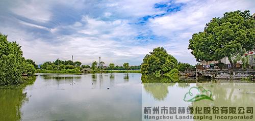 五杭村位于杭南村的東北部,兩村相距不遠,其美麗鄉(xiāng)村建設內容主要包括村口景觀、文化禮堂院內部分景觀、公園廣場景觀、房屋外立面整治、道路鋪裝、水環(huán)境治理等。