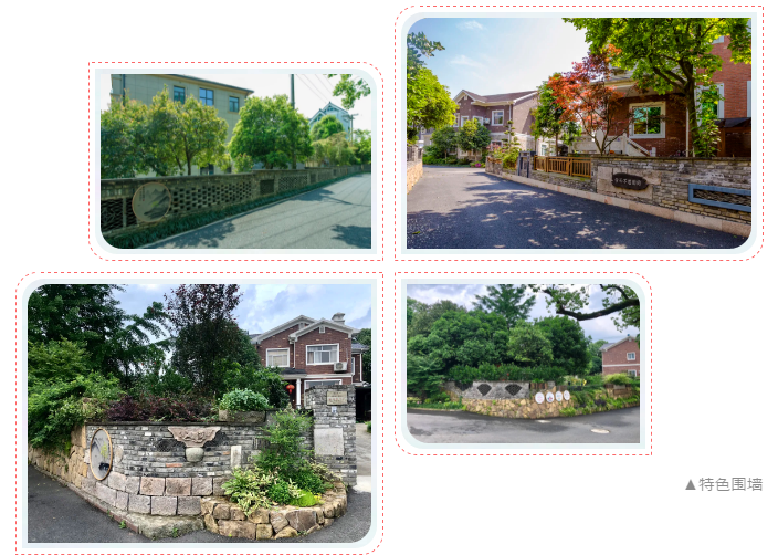 景墻邊的植物配置同樣有講究。利用銀杏、桂花、梅花、紅楓等植物營(yíng)造上層空間,這些植物具有遮擋作用,能夠?yàn)橥ピ籂I(yíng)造一定的私密空間。通過(guò)各種形態(tài)的小型喬灌木,打造中層空間,磚石和襯托景墻,使家家戶戶的景觀更加豐富多變。