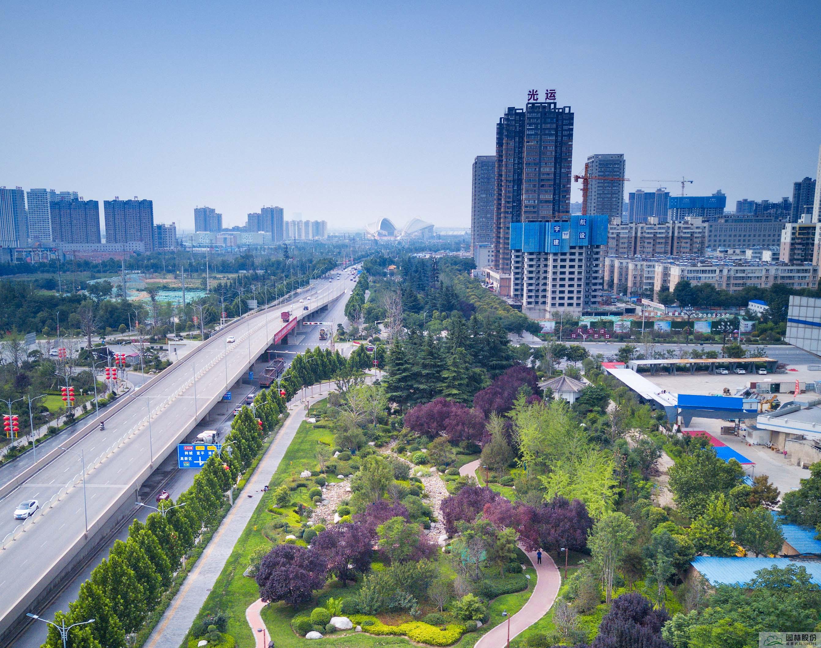 立體園林,師法自然。在另一個城市園林項目——渭南市中心城市道路綠化提升改造項目,南北向沿倉程路和渭清路的兩條城市綠廊成為打造重點,公司打破原有西北城市綠化景觀一成不變的陣列布局,在高鐵站對面的倉程路端頭,設(shè)計以造型油松為主的迎賓景觀,豐富植物組團層次,引進耐旱耐寒的常綠品種,滿足渭南市人民對城市景觀從園林變園藝的期待,打造煥然一新的城市風貌。