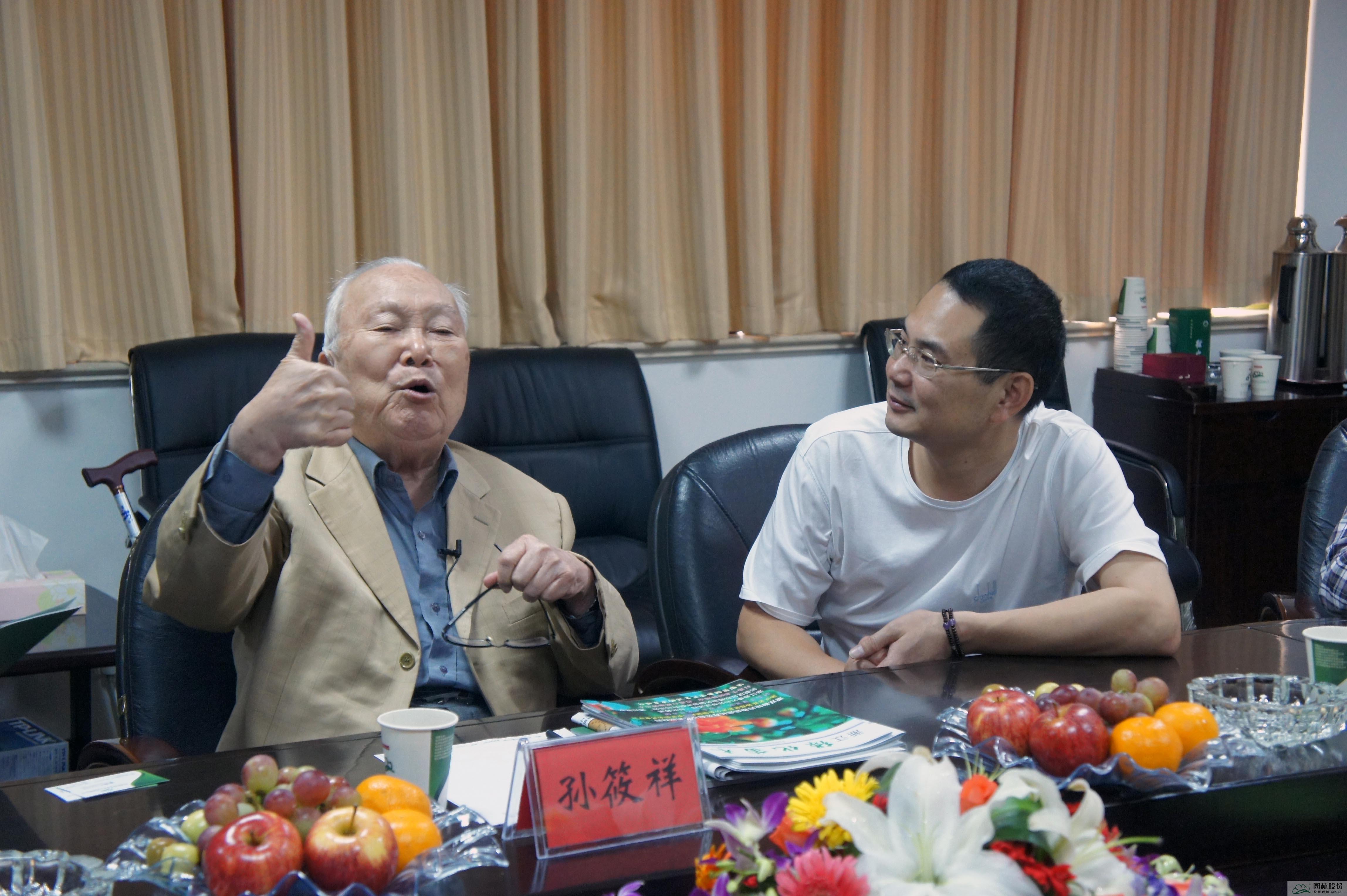 孫筱祥先生的學術思想和造園理念對風景園林行業(yè)的發(fā)展產生了深遠影響,作為眾多園林企業(yè)中的一員,園林股份同樣深受孫筱祥先生造園思想的影響。2011年9月,90歲高齡的孫筱祥先生攜夫人蒞臨企業(yè)總部,與董事長吳光洪等暢談造園理念,交流造園思想,對企業(yè)為中國園林事業(yè)做出的貢獻表示贊賞與肯定。