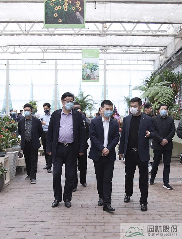 ▲與會(huì)人員在花園中心室外景觀展示區(qū)合影留念