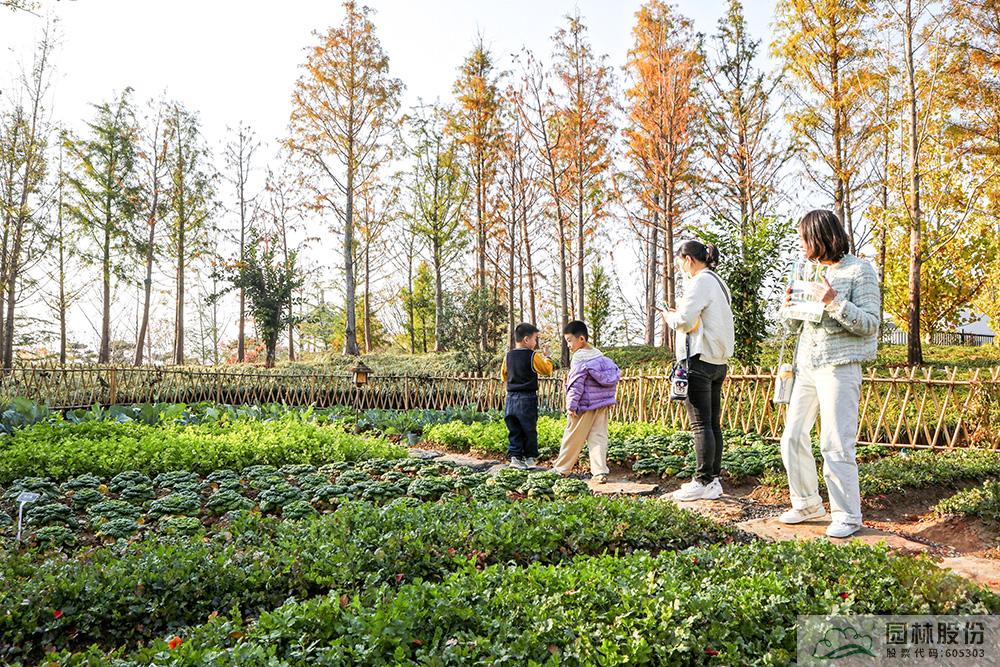 聽完美麗浙江的精彩故事,繼續(xù)前行。推開后院半掩的木門,園內(nèi)一畦畦綠油油的香菜、紫甘藍(lán)、大白菜、萵苣、芹菜、小蔥等長勢喜人,山楂、石榴、香泡、柿子等果子在枝頭飄散著淡淡的果香,銀杏、楓樹、黃櫨等色葉樹紅黃交錯,鄉(xiāng)土植物的配置強(qiáng)化了民居空間的山地氛圍和景觀特色,生態(tài)菜園景觀勾勒出錢塘人家的現(xiàn)代田園風(fēng)情。