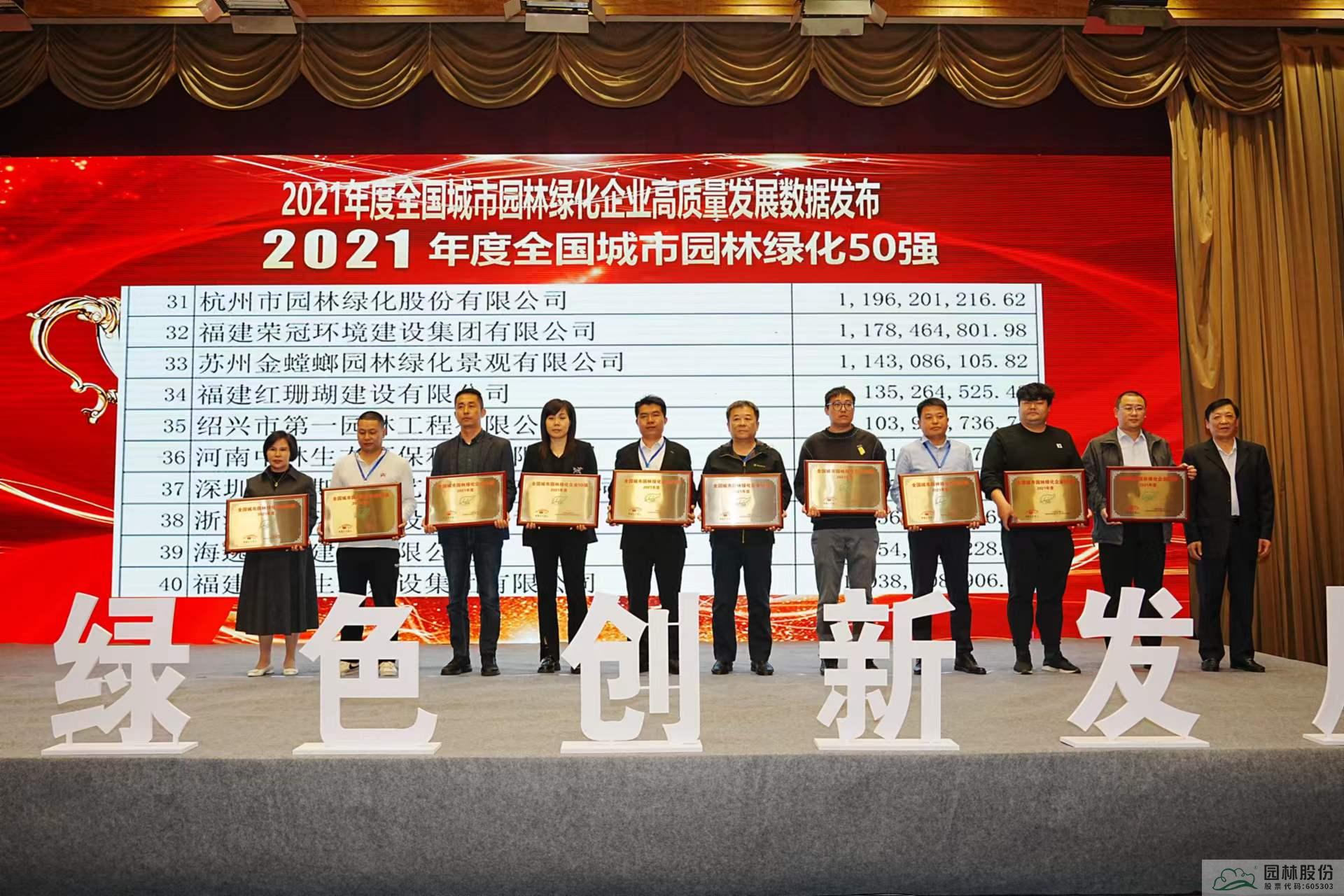 園林股份上榜2021年度全國城市園林綠化50強(qiáng)