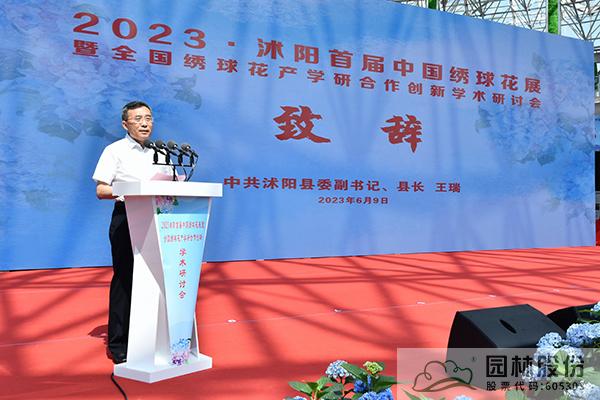 王瑞在致辭中代表沭陽縣委、縣政府及200萬花鄉(xiāng)人民,向參加開幕式的各位領導、各位嘉賓表示熱烈的歡迎和衷心的感謝,并簡要介紹了沭陽經(jīng)濟社會及繡球花產(chǎn)業(yè)發(fā)展。希望共同打造具有廣泛影響力、引領全國花卉行業(yè)發(fā)展的交易盛會,進一步擦亮沭陽“中國花谷”的彩色名片,奮力譜寫中國花木產(chǎn)業(yè)高質量發(fā)展新篇章。