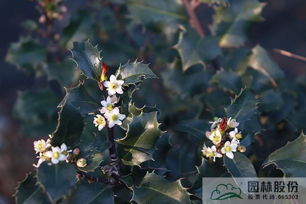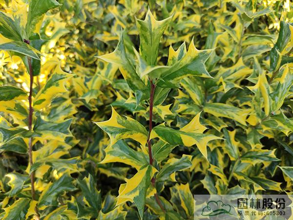 花葉枸骨Ilex cornuta 'O Spring':它的母本是我國(guó)最為常見(jiàn)的的枸骨,經(jīng)常在溝壑、丘陵和山路旁發(fā)現(xiàn)其存在。由俄克拉荷馬州的一名苗圃工人Otto Spring發(fā)現(xiàn)的變異。常綠灌木或小喬木,屬于雄性植株。葉厚革質(zhì),有光澤,葉形呈四角狀長(zhǎng)圓形,葉緣常反曲,在春季,葉緣呈現(xiàn)黃油色調(diào),到了秋冬季則會(huì)變成金黃色,莖稈也會(huì)變成紫色。適合種植在庭院、公園、街道等地方,可以作為綠籬植物使用,也可以修剪成小樹的形狀。對(duì)土壤適應(yīng)性較強(qiáng),幾乎可以在任何土壤中生長(zhǎng),而且具有耐干旱和高溫的特性。因此,它是一種簡(jiǎn)單耐用的冬青品種。