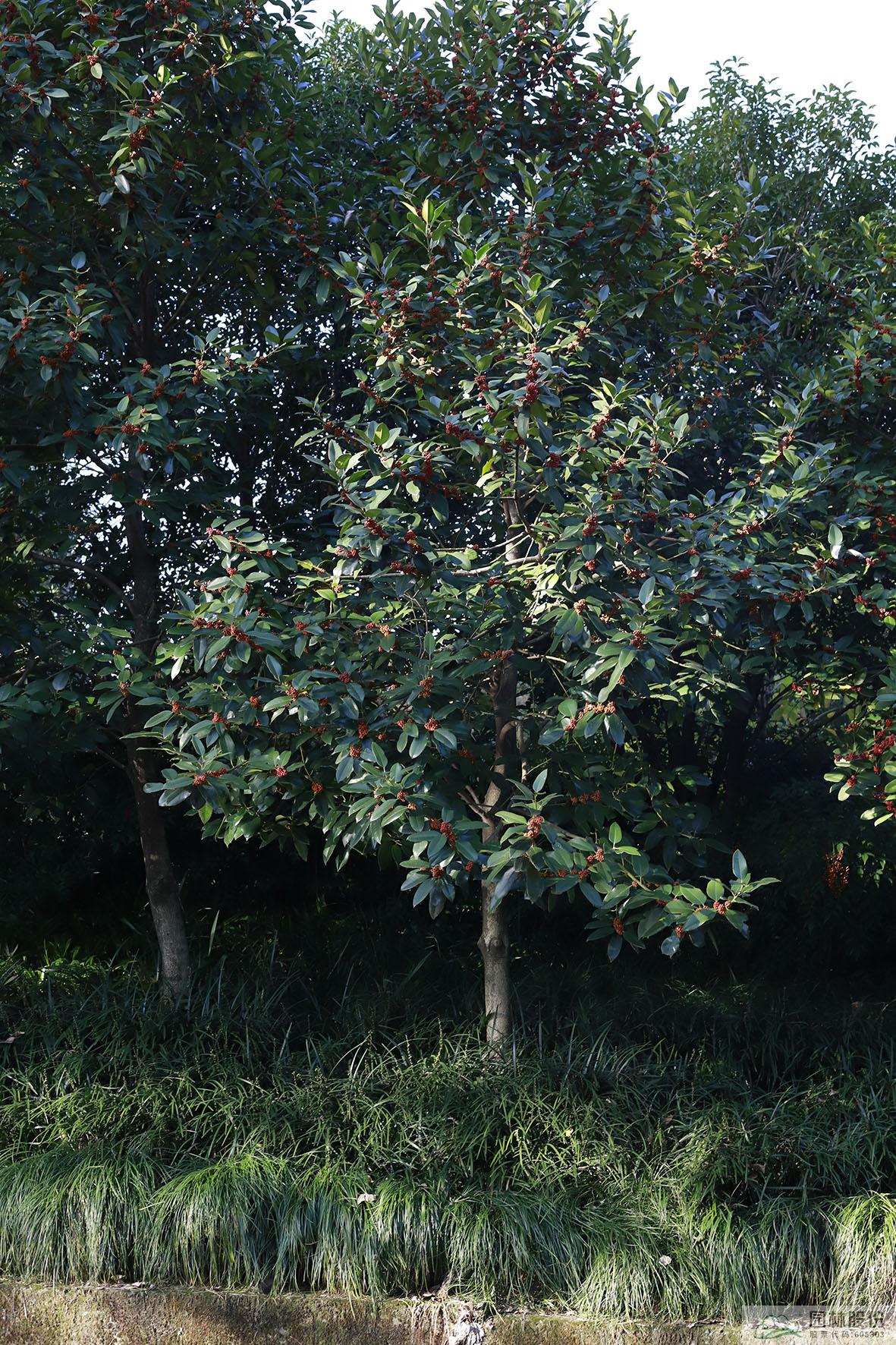 鐵冬青:其葉子四季常青,故名鐵冬青。為常綠喬木或灌木,高可達(dá)20米,葉全緣。果實(shí)紅色,紅若丹珠,小巧可人。掛果期長(zhǎng),能從10月一直持續(xù)至來(lái)年3月。因有多子多孫,興旺發(fā)達(dá)之意,在民間俗稱“萬(wàn)子千紅樹(shù)”。樹(shù)皮或根皮為中藥“救必應(yīng)”,具清熱解毒,利濕的功效。為優(yōu)良觀果樹(shù)種,適宜在園林中孤植或群植。