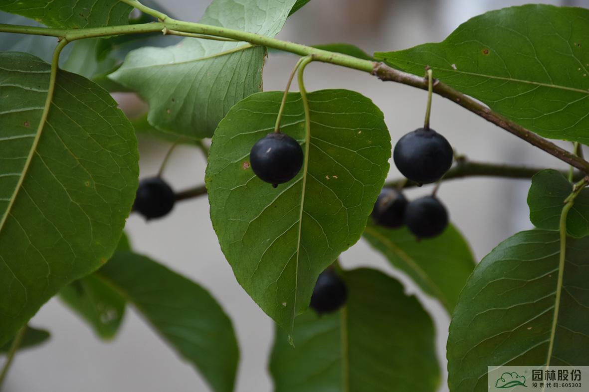 大果冬青:落葉喬木,樹(shù)體高大,分枝點(diǎn)高。葉片紙質(zhì)至堅(jiān)紙質(zhì),卵形或卵狀橢圓形?;ò咨揖叩南銡?。果成熟時(shí)黑色,球形。四季景觀分明,隨時(shí)間和空間變化呈現(xiàn)不同的姿態(tài),色彩和意境,常在園林景觀中孤植。
