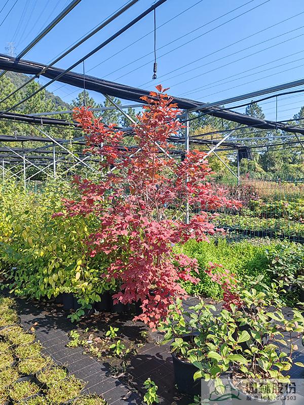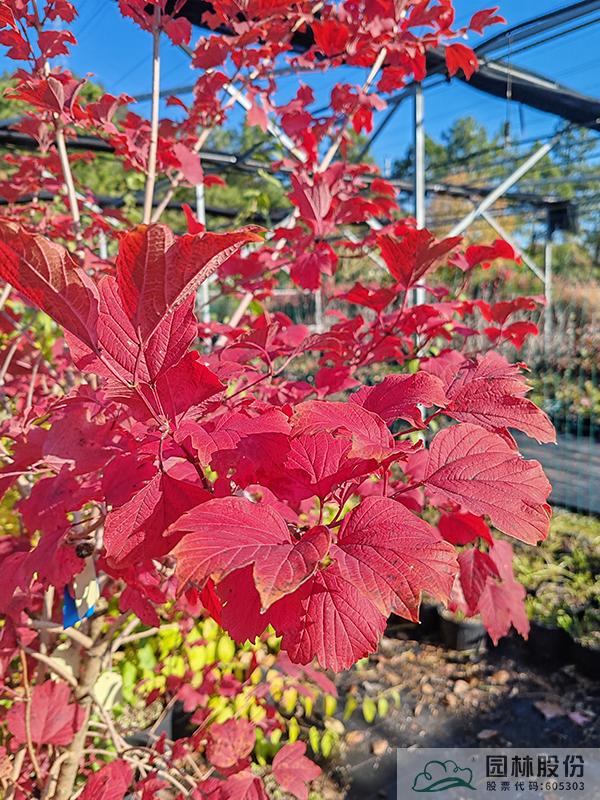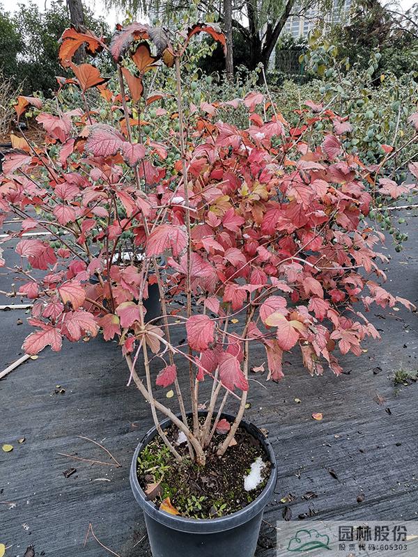 忍冬科莢蒾屬,叢生性落葉灌木,高可達(dá)4米?;ò咨?,花期4-5月,果大而紅,觀果期長(zhǎng),可從7月持續(xù)到10月。葉掌狀,通常三裂,秋季一般9-10月葉色開(kāi)始轉(zhuǎn)紅,11月達(dá)到最佳效果。歐洲莢蒾是莢蒾屬中秋色葉效果較好的一個(gè)種類(lèi),紅葉期來(lái)得比較早,且葉色最為鮮艷。該種病蟲(chóng)害少,適應(yīng)性強(qiáng),耐寒,北方室外能正常生長(zhǎng)。生長(zhǎng)速度快,適合工程應(yīng)用或庭院觀賞。