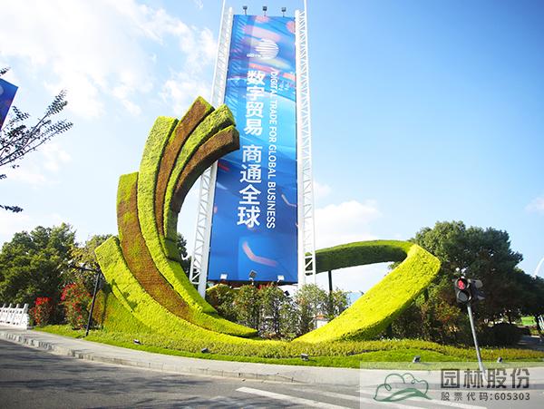 為增加數(shù)貿(mào)展會(huì)主題在邊側(cè)帶內(nèi)設(shè)置3座綠雕:杭扇-以扇子造型主題的全球數(shù)字貿(mào)易博覽會(huì)綠雕,展-以全球數(shù)字貿(mào)易博覽會(huì)會(huì)徽造型綠雕,數(shù)貿(mào)-以飄帶造型主題的“數(shù)貿(mào)錢潮 杭向未來(lái)”綠雕。綠雕植物均采用佛甲草和五色草搭配,周邊采用三角梅及花鏡植物配置。港南大道島頭花鏡運(yùn)用金姬錐、彩葉球、細(xì)葉芒、塞娜等植物來(lái)強(qiáng)化迎賓氣氛,通過(guò)多年生地被草花,結(jié)合精致植物組團(tuán)+特色綠雕,共同營(yíng)造多彩氛圍,打造熱烈迎賓門戶。