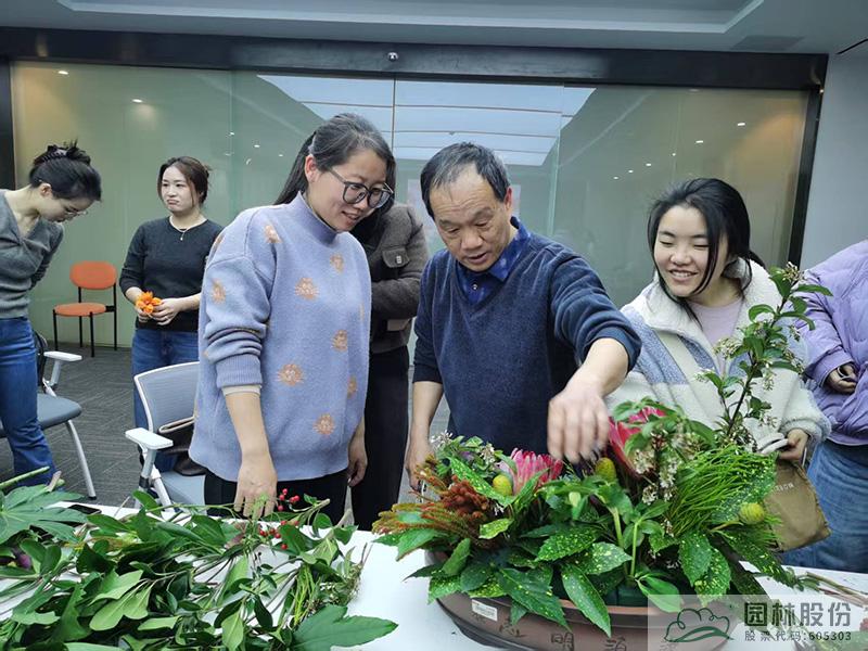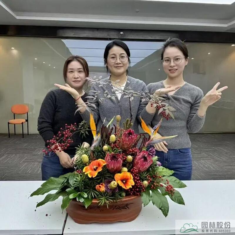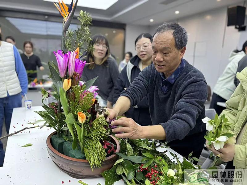 隨后,一場別開生面的插花藝術課堂拉開帷幕。江志清大師以生動的語言,從插花藝術的基礎理論、色彩搭配技巧到花材處理方法等,娓娓道來?,F(xiàn)場的女性員工們認真聆聽,不時記錄要點,沉浸在花藝的美學世界里。理論學習之后,大家以六人為一組,在江志清大師的指導下,動手進行插花創(chuàng)作。剪刀輕剪,花枝舒展,巧手翻飛間,一朵朵鮮花被賦予了新的生命。大家自由發(fā)揮創(chuàng)意,將普通的花材變成一件件獨具匠心的花藝作品?;顒蝇F(xiàn)場花香四溢,歡聲笑語不斷,每一位女性都在創(chuàng)作中找到了屬于自己的那份寧靜與自信,更在團隊協(xié)作中增進了彼此的溝通與默契。