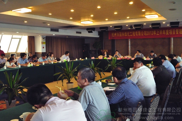 5月26日,杭州市園林綠化工程有限公司在田園賓館八樓會議廳召開了“2012年上半年度項目管理交流會”,市場部經(jīng)理傅磊主持會議。各分公司、項目部及相關(guān)部門共六十多人參加了會議,董事長吳光洪、副總經(jīng)理陳伯翔、總經(jīng)理助理吳憶明等領(lǐng)導(dǎo)出席。
