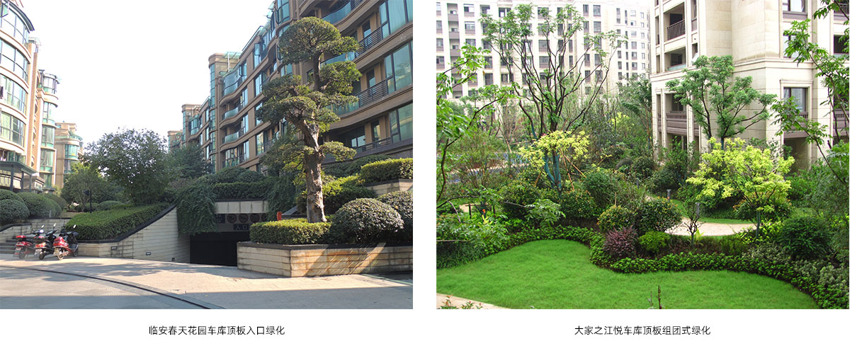 利用梁柱、承重墻等結(jié)構(gòu)的設(shè)置,增加頂板覆土厚度,提高植物群落復(fù)雜程度,豐富景觀多樣性。并通過排水系統(tǒng)、輕型基質(zhì)、花箱等種植方式的利用,建立形式多樣、種類豐富的頂板結(jié)構(gòu)景觀模式。